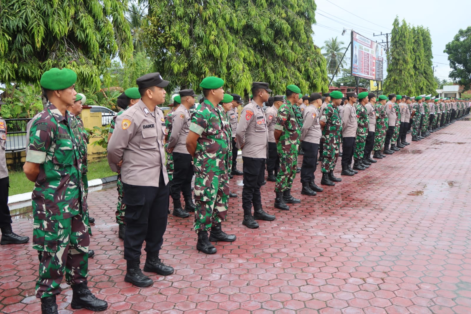 Aceh Timur — Polres Aceh Timur menggelar apel gabungan bersama TNI di Lapangan Sarja Arya Racana Mapolres Aceh Timur, Senin pagi (14/11).