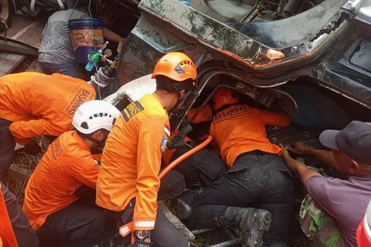 “Dari hasil assesment tesebut tim memutuskan menggunakan peralatan ekstrikasi dan dibantu mobil Crane untuk membuka akses evakuasi korban,” terangnya.